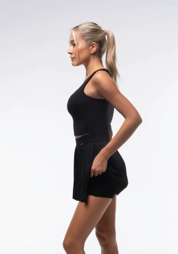 The Kira pleated skort set is a modern take on the tennis classic, with sharp pleats and a mini-length hem. A high-rise, hold-you-in waistband smooths and supports, and built-in shorts include a pocket for a tennis ball or small essentials.