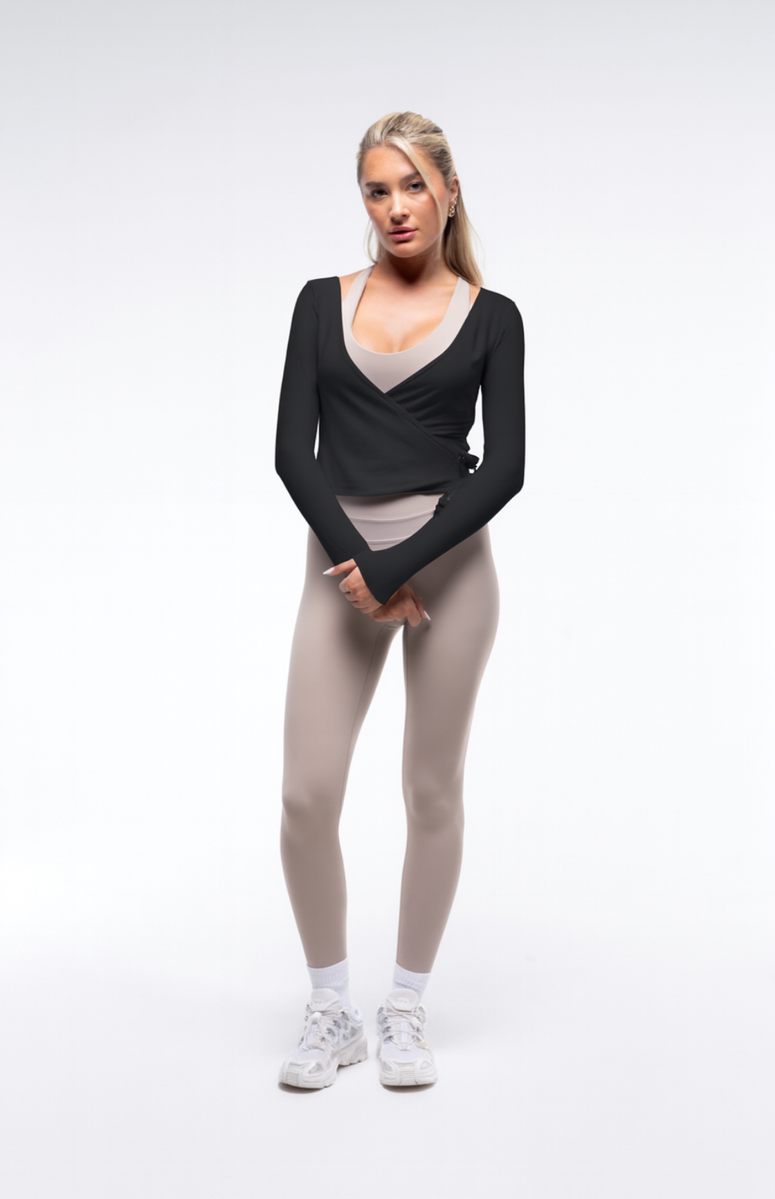 A versatile wrap top that can be styled multiple ways to suit your look. Comfortable and contoured, it pairs seamlessly with any SKN set for a complete outfit.