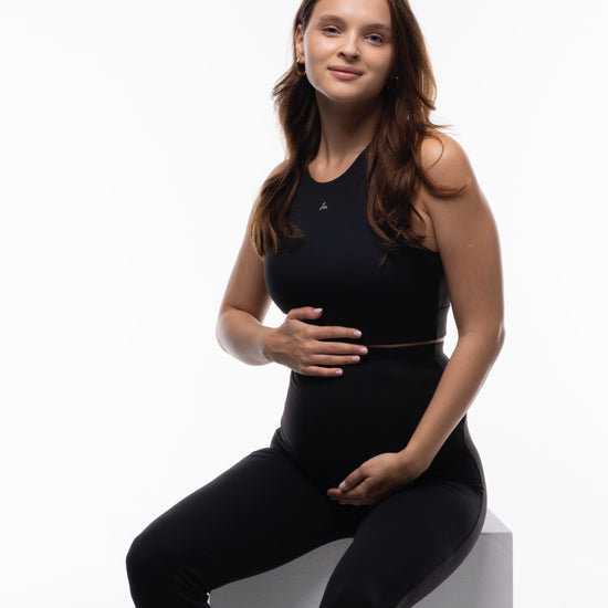 Ley High Neck Top is made to move through every workout and your daily routine. With an integrated inner bra and a sculpted outer layer, it delivers secure support and a streamlined silhouette. Pair it with high-waisted leggings, relaxed joggers, maternity leggings, or maternity flared pants for effortless studio-to-street style.