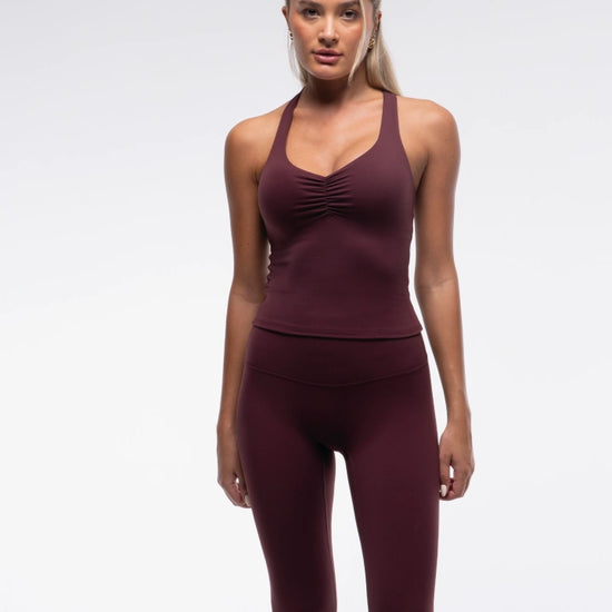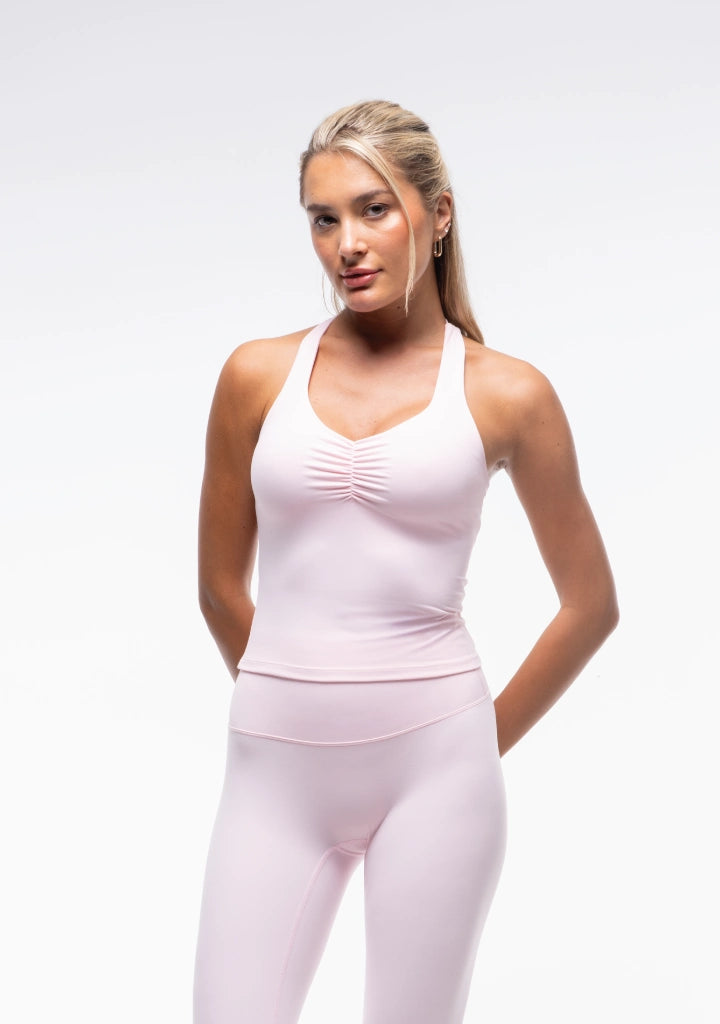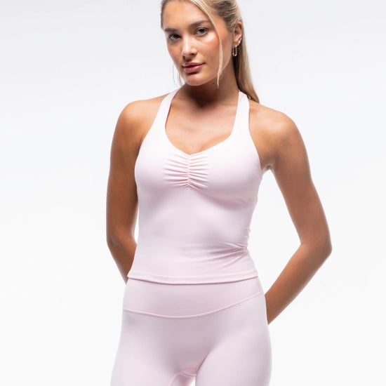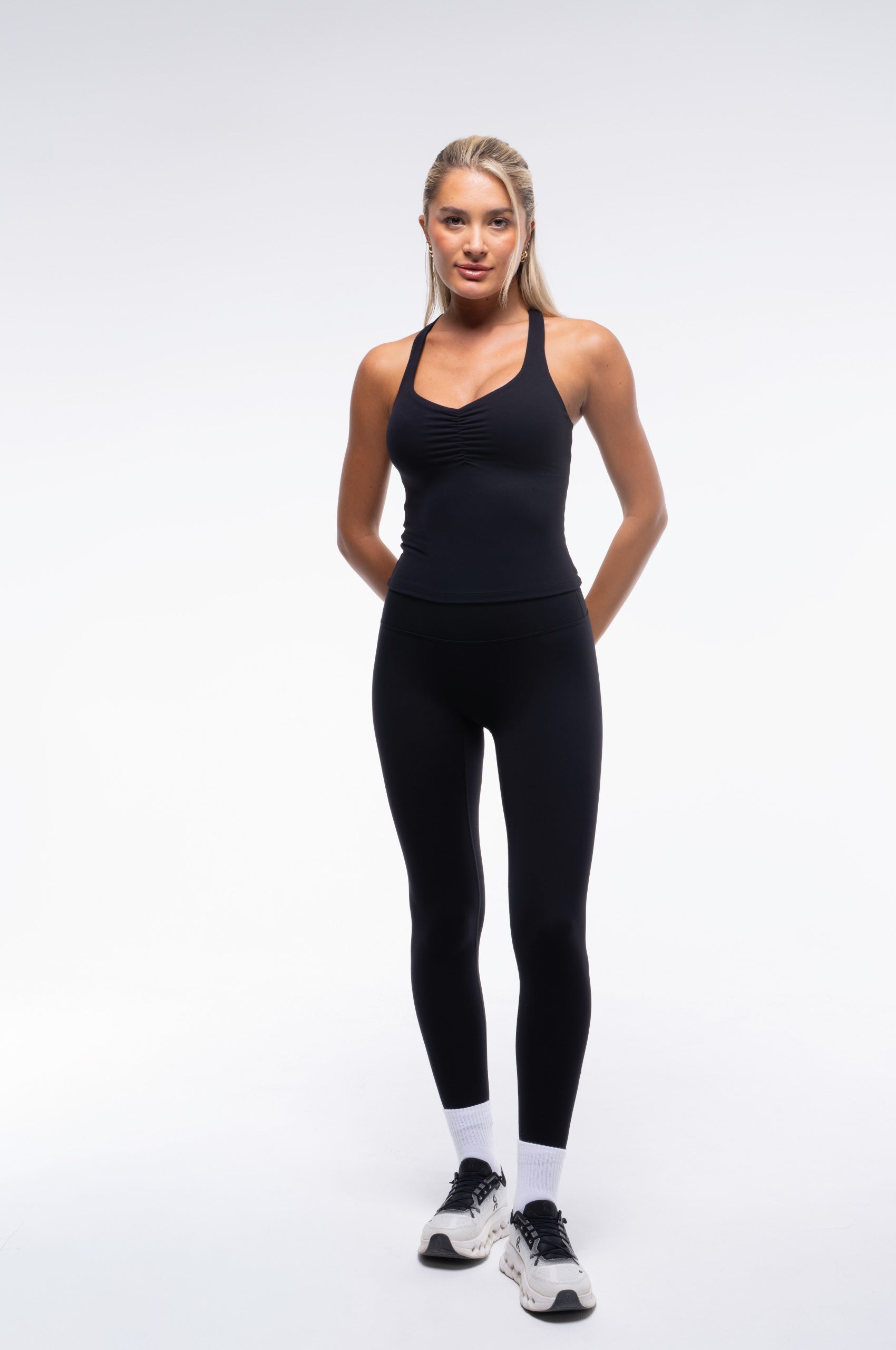 Ruched detailing meets a halter cut for a modern take on a classic tank. Lyra’s feminine and flirty shaping combined with soft stretch fabric makes it perfect for both active days and styled-up everyday looks.